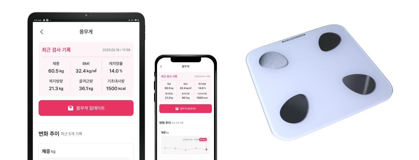 체중·BMI·체지방, 체중계 연동 자동 데이터 수집