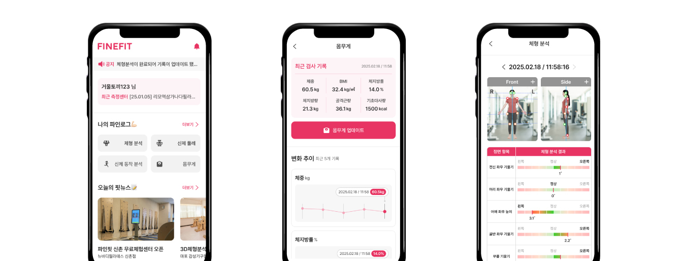 체형·모션·체중 결과 통합 확인 + 건강관리 플랜 제공